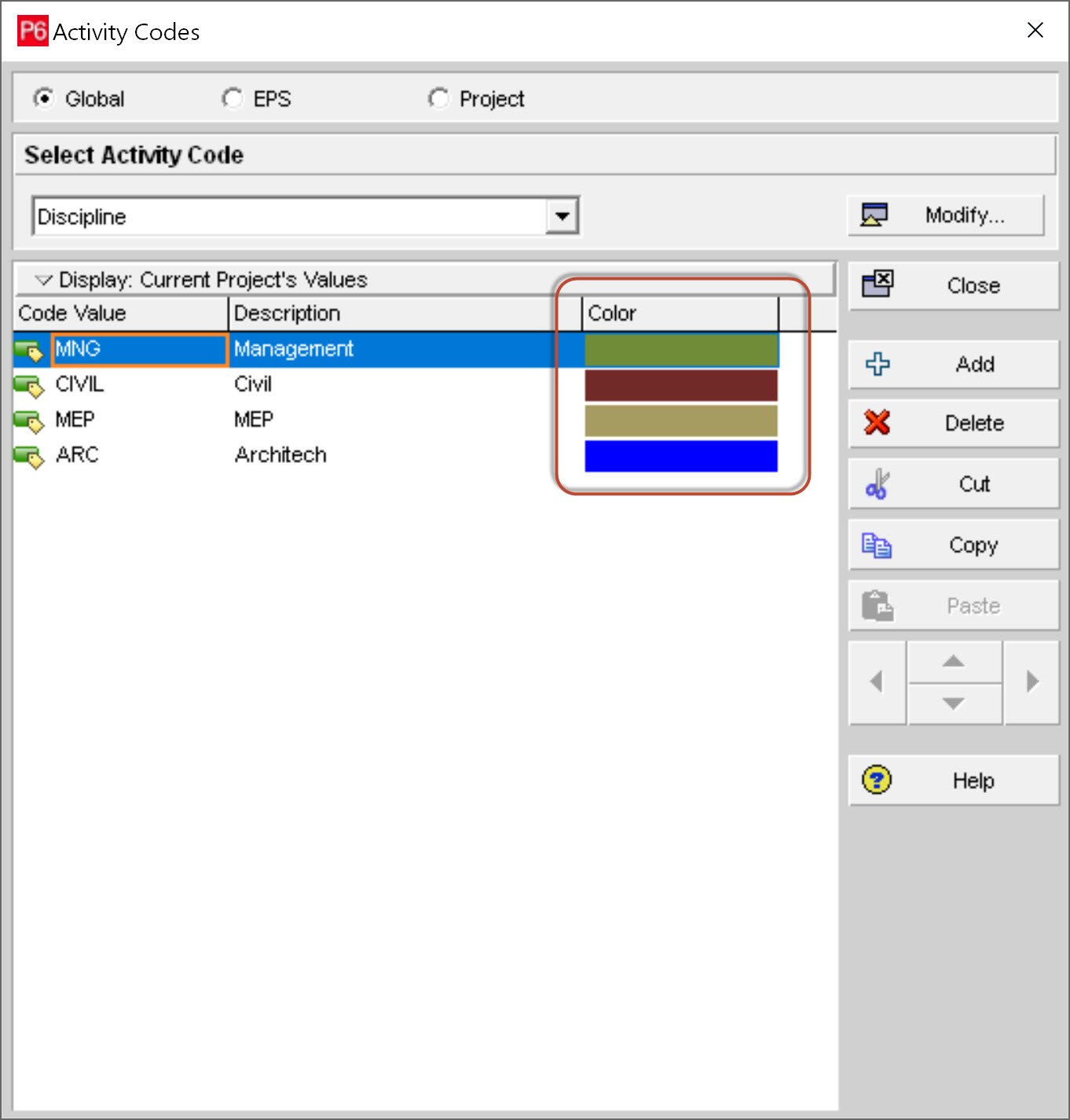 การกำหนดสีของ Activity Code สำหรับการใช้งาน Visualizer หลายๆคนสงสัยว่าทำไมเวลาเราสร้าง Activity Code ในโปรแกรม Primavrea P6 Profressional แล้วถึงมีการกำหนดสีของค่า Activity Code ที่เราสร้างมาในแต่ละค่าตามภาพ