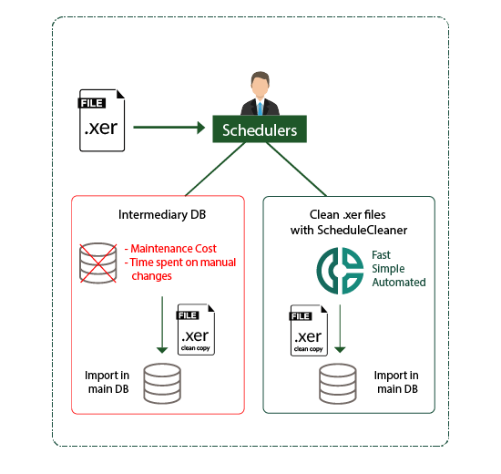 ScheduleCleaner เป็นโปรแกรมบนเครื่องคอมพิวเตอร์ส่วนบุคคล (desktop application) บนระบบปฎิบัติการ Windows เพื่อให้ผู้ใช้โปรแกรม Oracle Primavera P6 ทั้งนักวางแผนโครงการ นักวางแผน ผู้จัดการโครงการ และอื่นๆ ให้สามารถลบข้อมูลที่ไม่อยากเปิดเผยหรือข้อมูลที่ปกปิด (Sensitive/confidential data) ที่เก็บเป็นไฟล์โครงการ XER เพื่อส่งแผนงานโครงการให้ผู้ที่เกี่ยวข้องกับโครงการนอกองค์กร แต่ไม่อยากให้เขาเห็นข้อมูลบางประการ เช่น ต้นทุนต่อหน่วย เป็นต้น